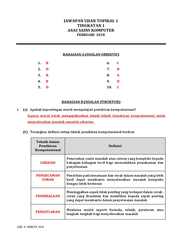 2018 Ujian 1 Ting 1 Jawapan Pdf